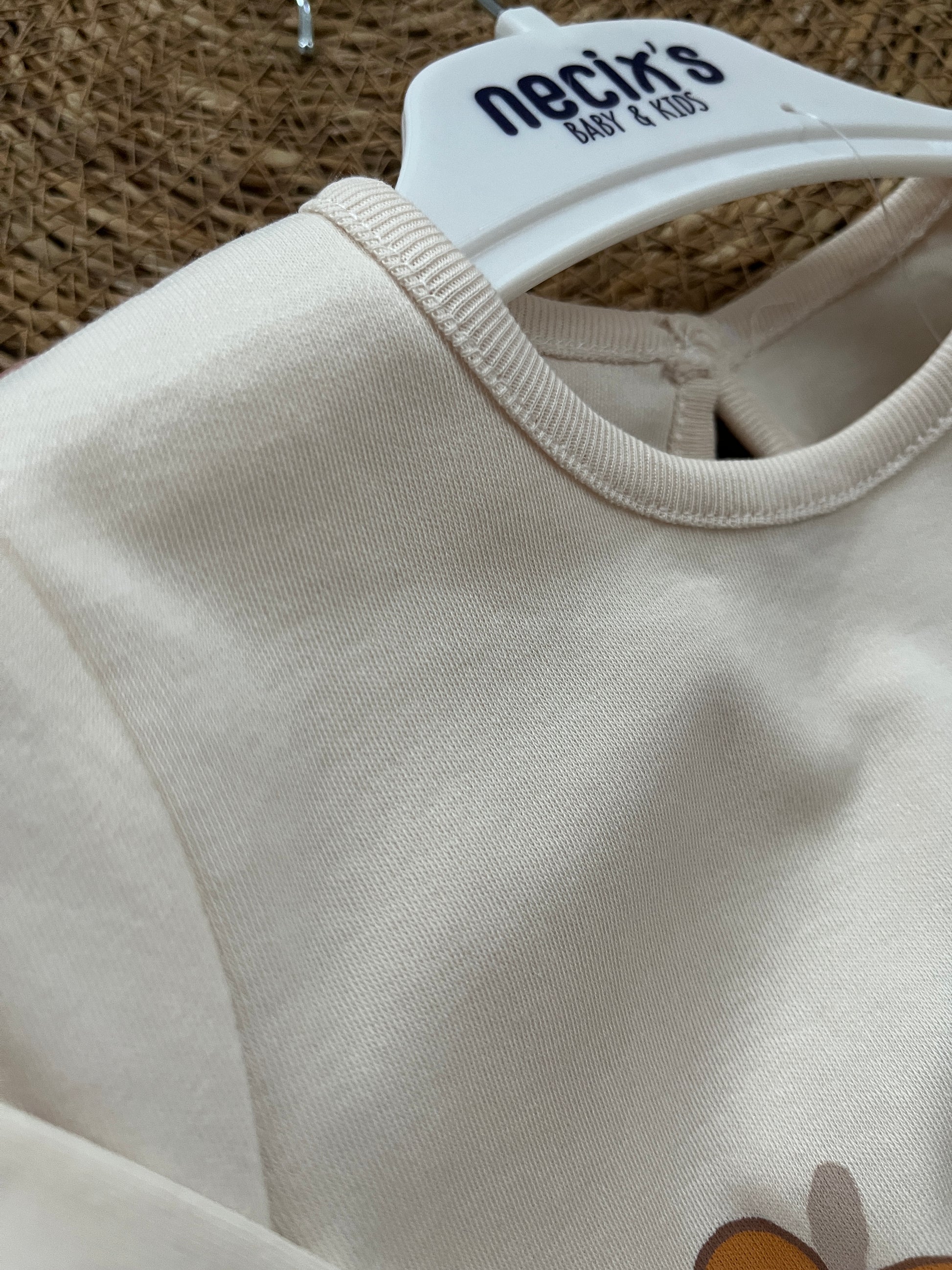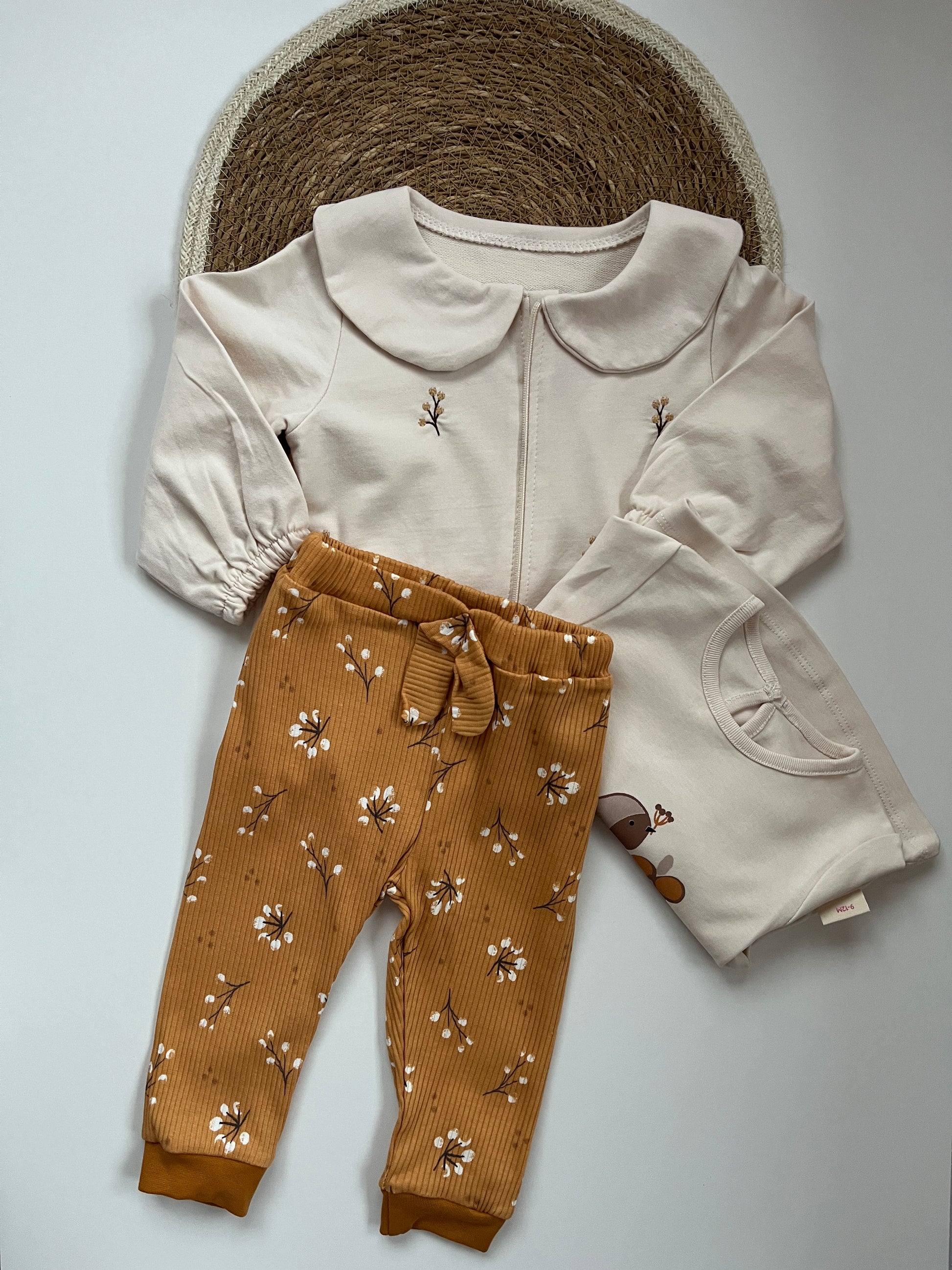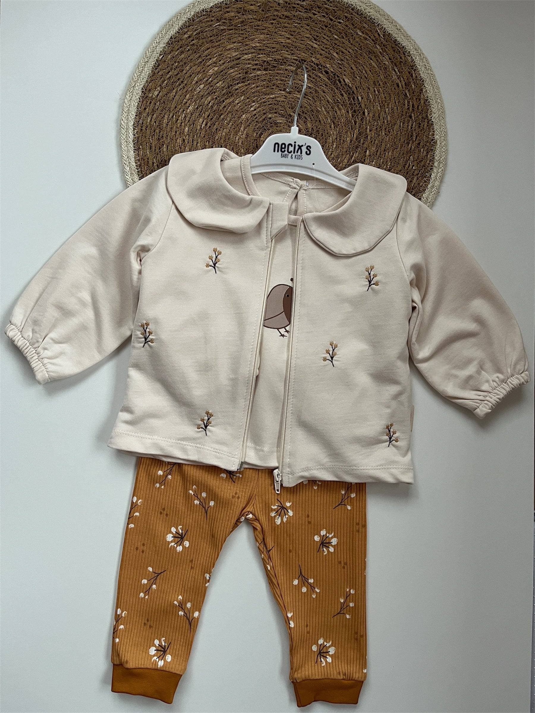 Комплект от 3 части за момиче. Комплектът включва горнище, блузка и клинче.100%ПАМУК, нежна и мека материя.