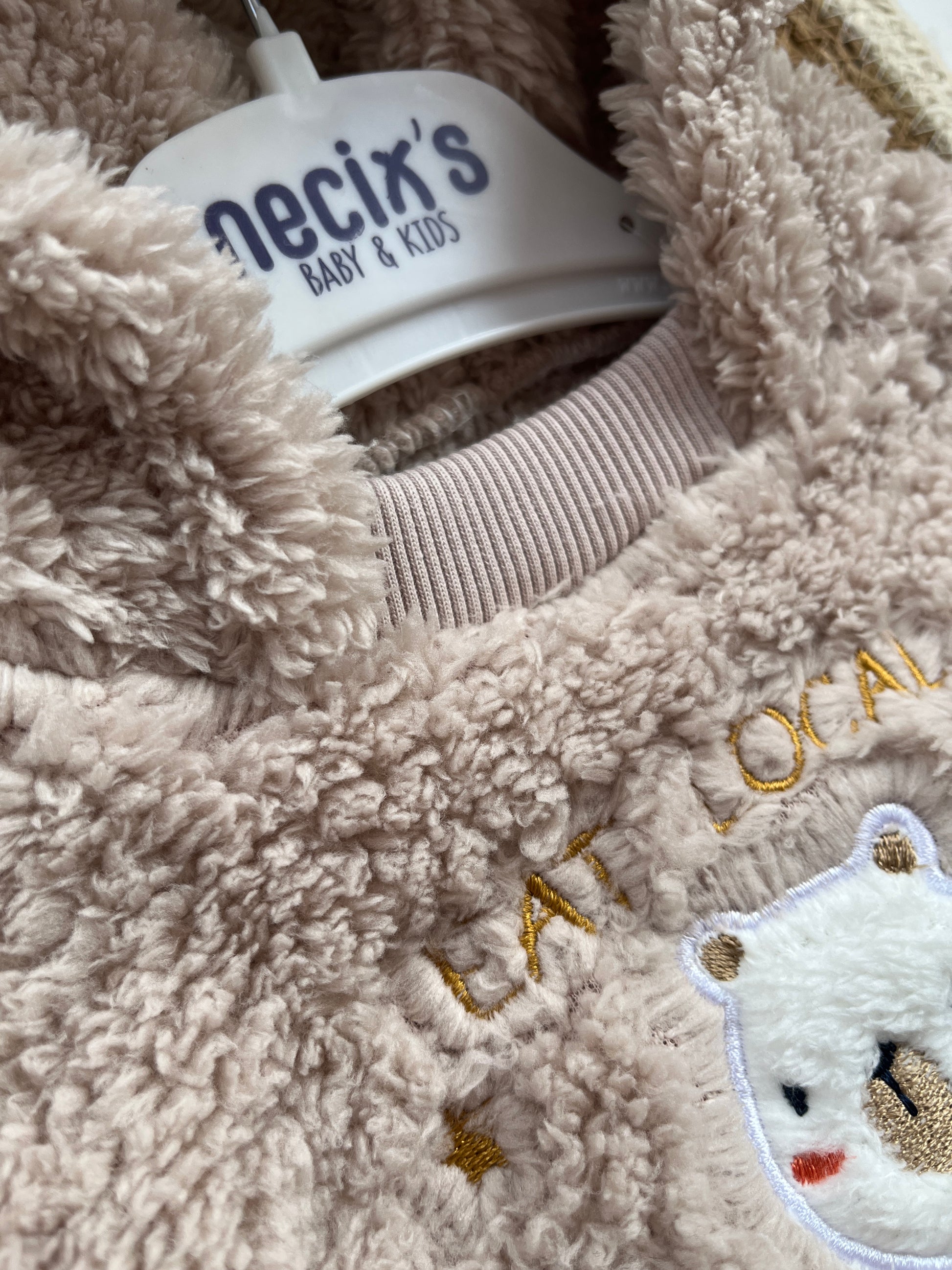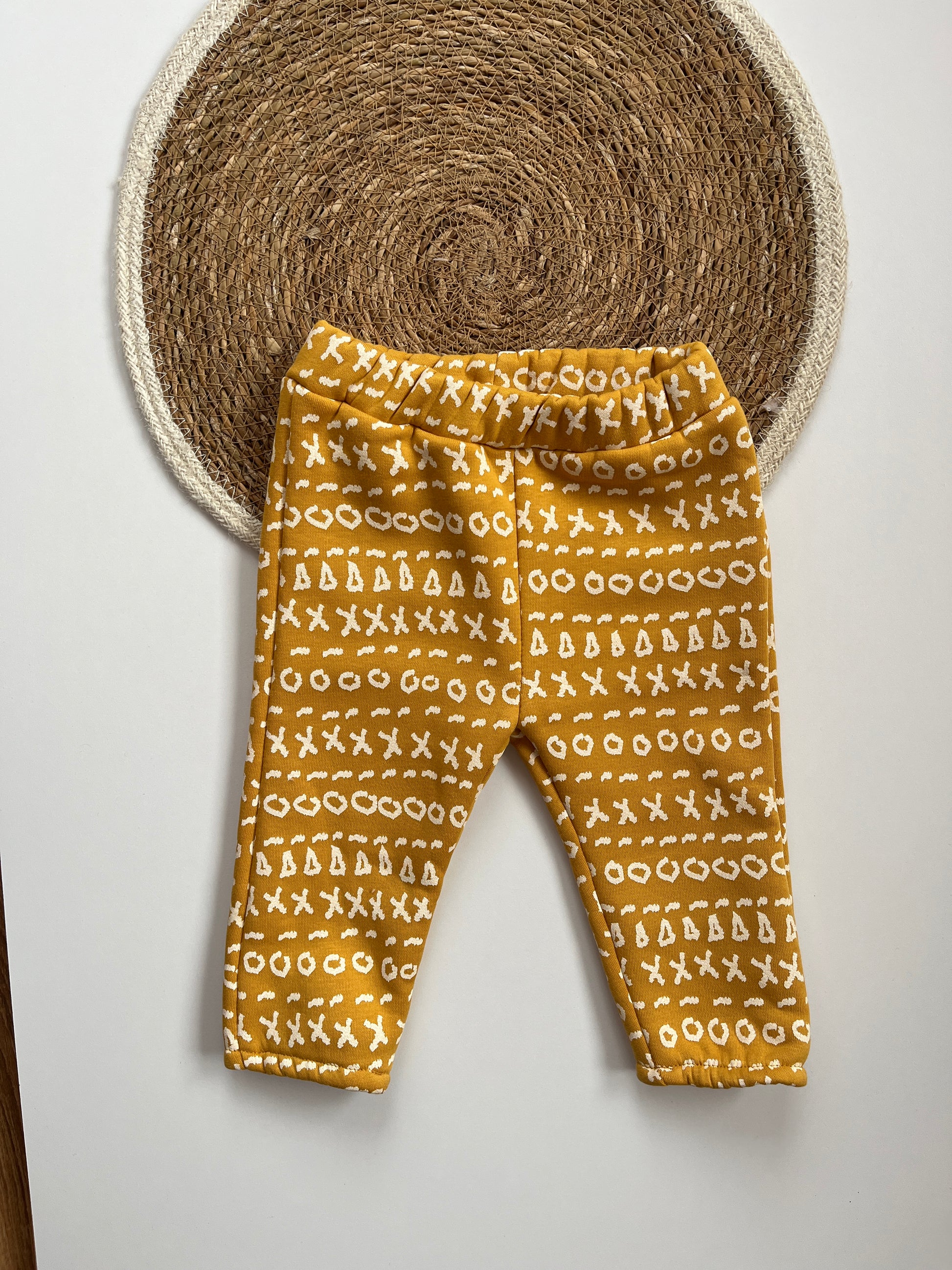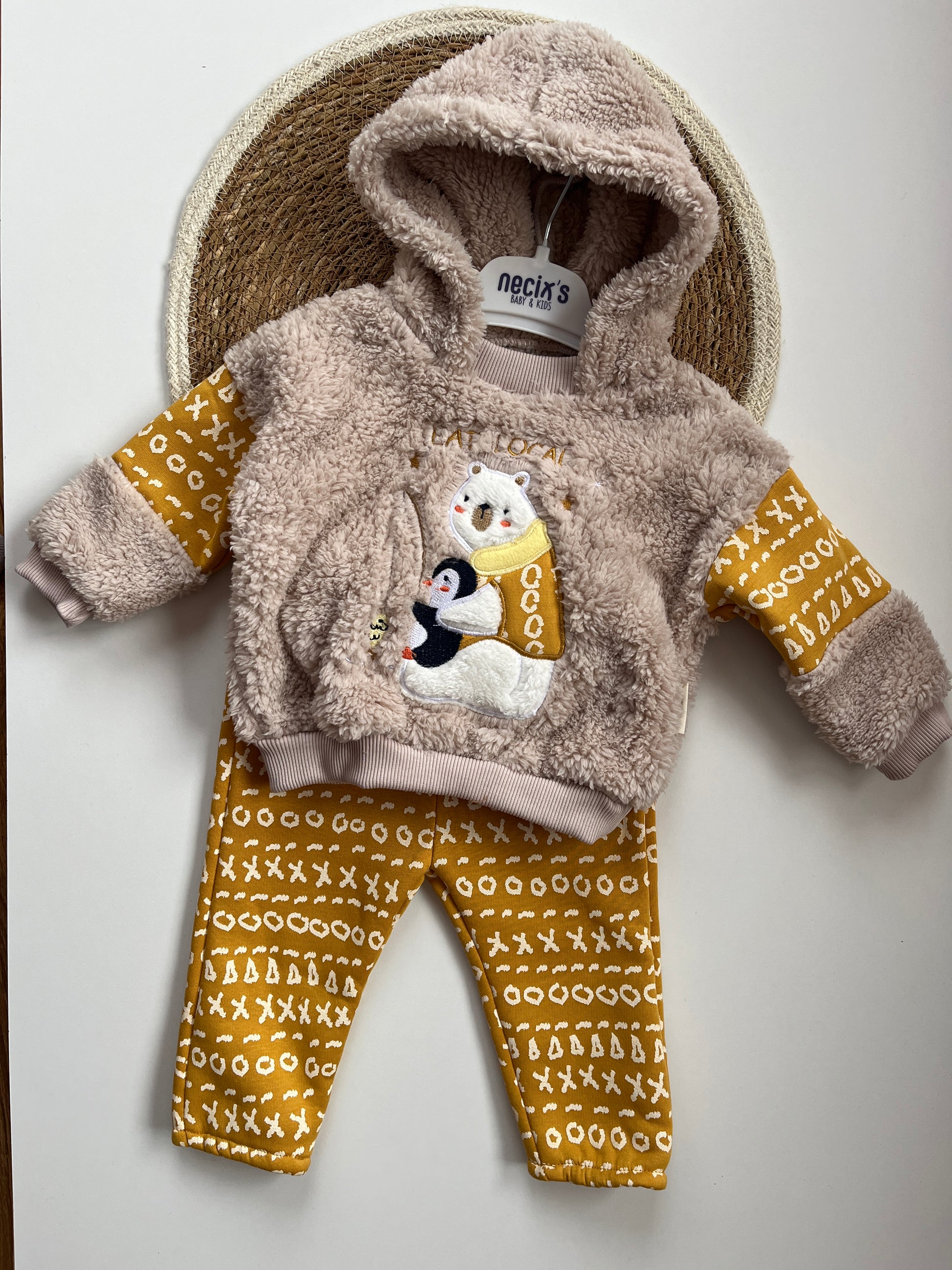 Комплект от плюшена блузка с ватиран панталон за момче в жълто.