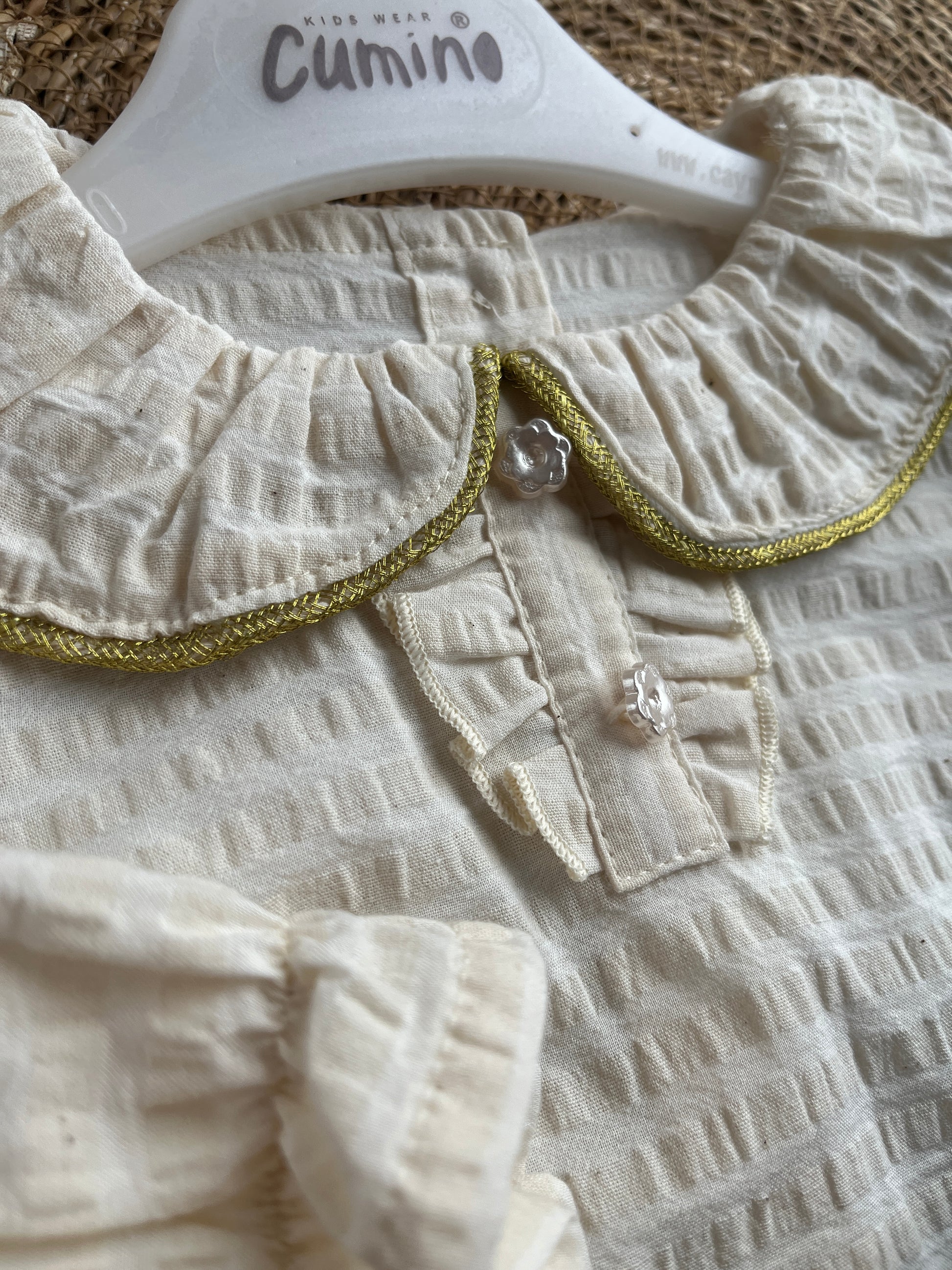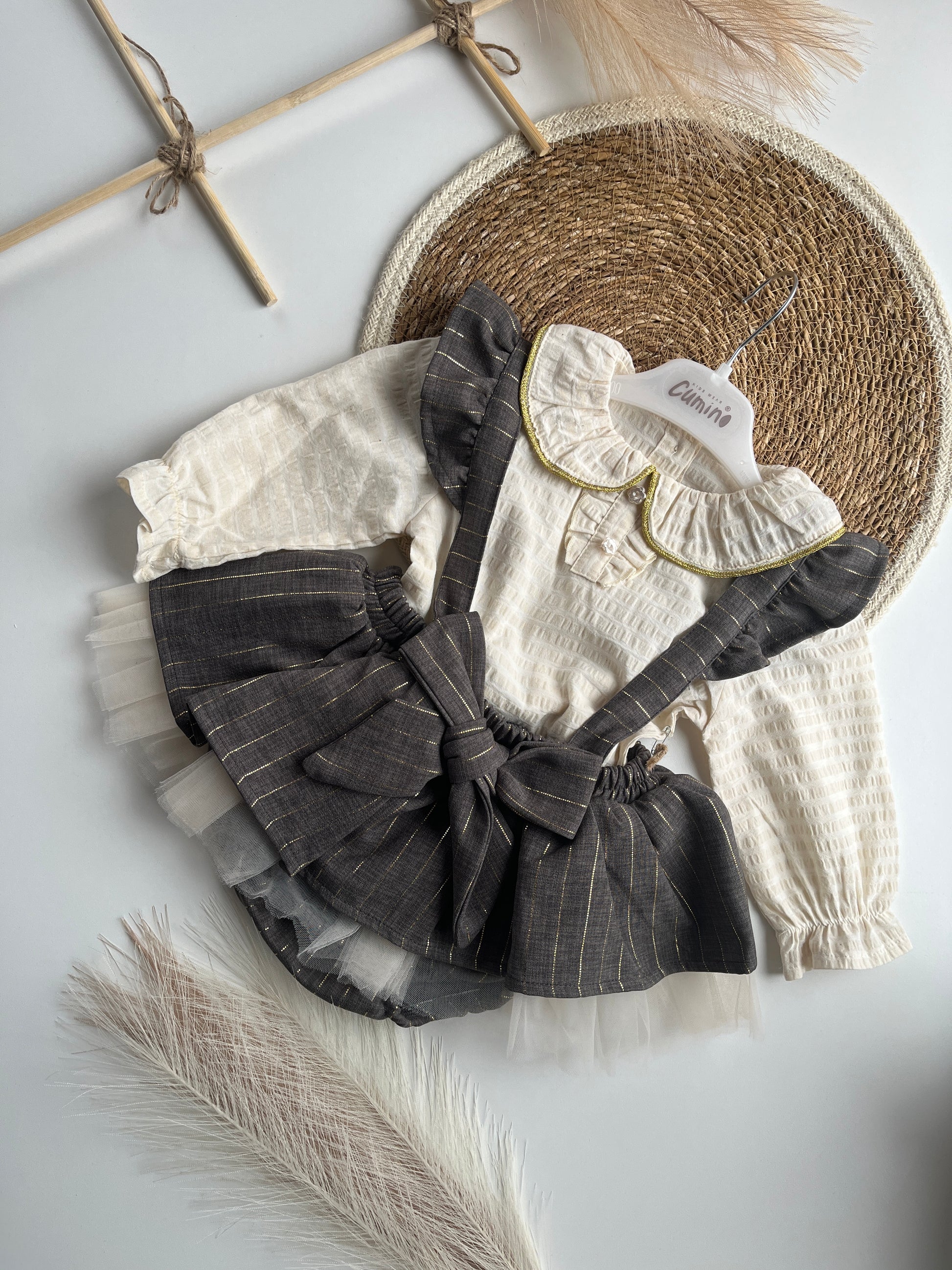 Рокля за бебе тип сукман с голяма панделка и риза с яка.